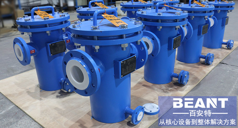 襯氟精密過濾器襯氟精密過濾器主要由接管、筒體、濾籃、法蘭、法蘭蓋及緊固件等組成。安裝在管道上能除去腐蝕性流體中的較大固體雜質,使機器設備(包括壓縮機、泵等)、儀表能正常工作和運轉,達到穩定工藝過程,保障安全生產的作用。 百安特可根據不同的介質及工況條件選用合適的襯里材料及工藝,為客戶提供全面的過濾解決方案。